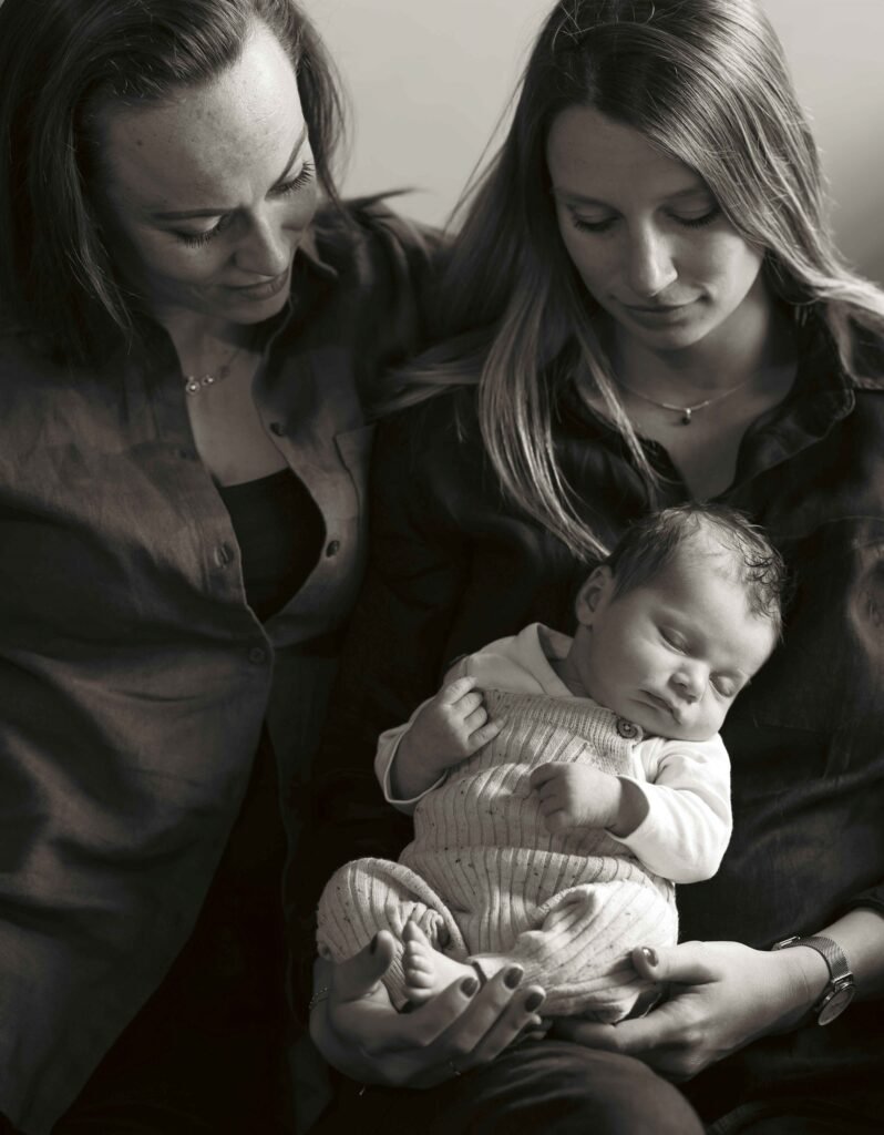 Safety is always the foundation of a newborn session. With lots of experience behind the camera, I guide parents through a calm, baby-led approach. We take breaks when needed, follow your little one’s rhythm, and create images that feel authentic — from sleepy portraits to first stretches, from tiny handholds to the quiet connection between you and your baby.